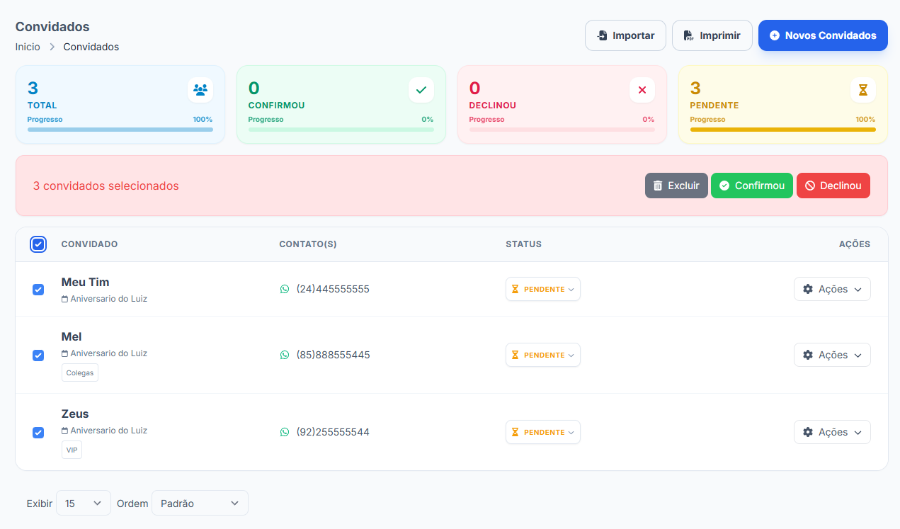 Os convidados foram atualizados com sucesso de forma rápida e prática 🚀