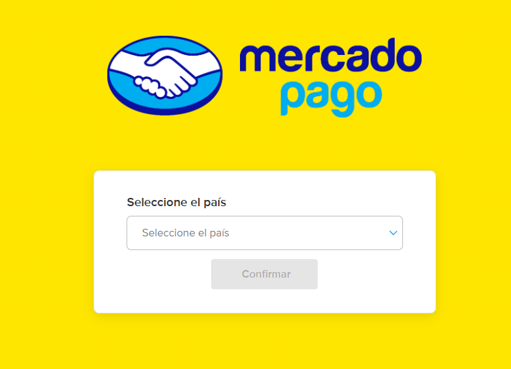 Na página do Mercado Pago, selecione seu país e prossiga.